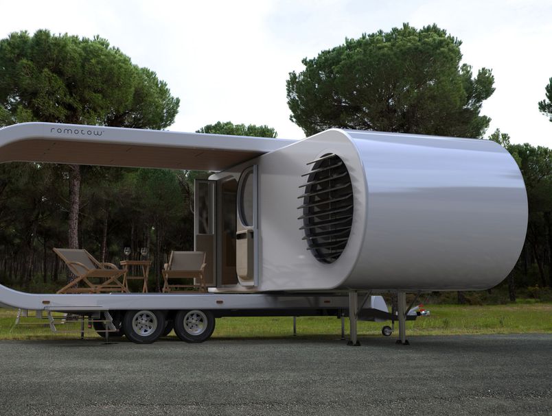 Овој модел работи веќе шест години, а желбата беше да се создаде попрострено и поудобно место за „мобилен“ живот. Romotow камп приколката овозможува максимално користење просторот, благодарение на флексибилниот дизајн, што може да се користи како подвижна канцеларија, продавница, камион за храна и слично.