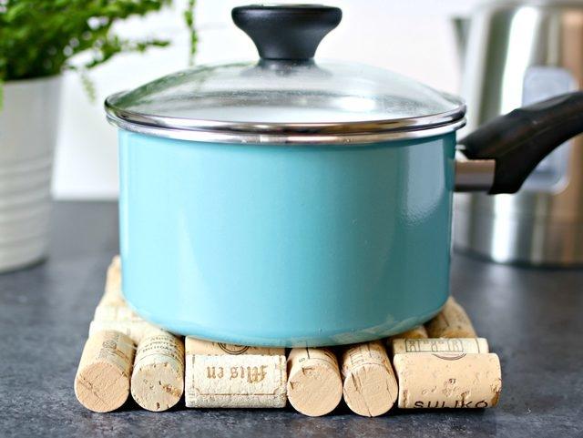 Ако имате празна лименка и топол лепак, закачете ги капачињата од плута на конзервата и го добивте оригиналното место за да го држите кујнскиот прибор.