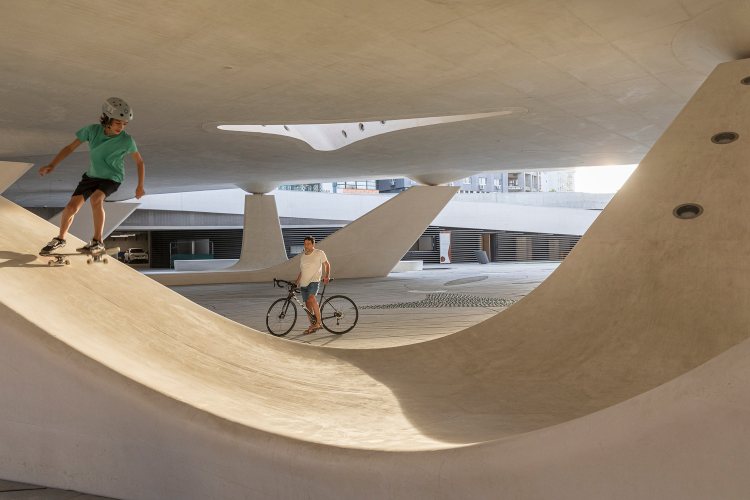 Има многу причини. Најслатките делови се просторите на неколку нивоа кои, како што покажуваат фотографиите, се неверојатно мазни и елегантни. Навистина, овие „облини“ се совршени за скејтборд, но уште една објективно одлична работа е што го прават паркот многу достапен за лицата со посебни потреби.