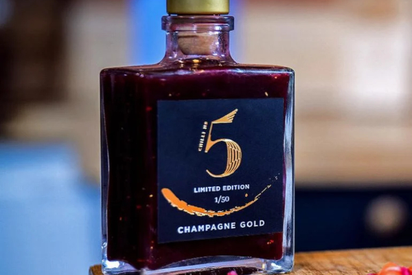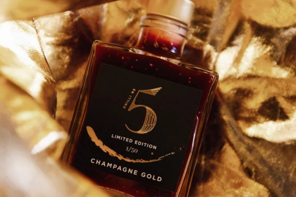 Станува збор за Champagne Gold, лут сос во ограничено издание, кој доби инфузија од шампањско и 23-каратно злато и кој се смета за најлуксузниот чили сос во целиот свет. Лансиран од британскиот претприемач Рамбл Ромањоли со седиште во Монако и готвачот Колин Рос, зачинот Chilli No 5 содржи боровинки, капини, ѓумбир, босилек, нане, куркума и јаболков оцет, како и ексклузивна мешавина од пет чили состојки.