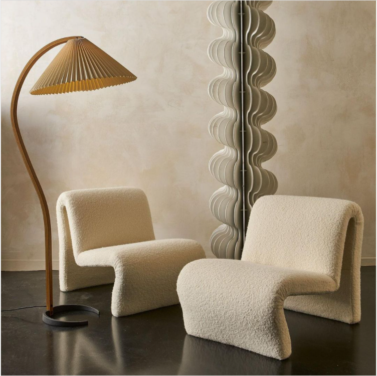 Седум децении подоцна, овој тренд продолжува да доминира во светот на ентериерите, завиткувајќи ги најмеките парчиња мебел со бесконечна волнена ткаенина. Покрај тоа, обично следи необични силуети и форми.