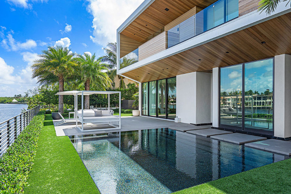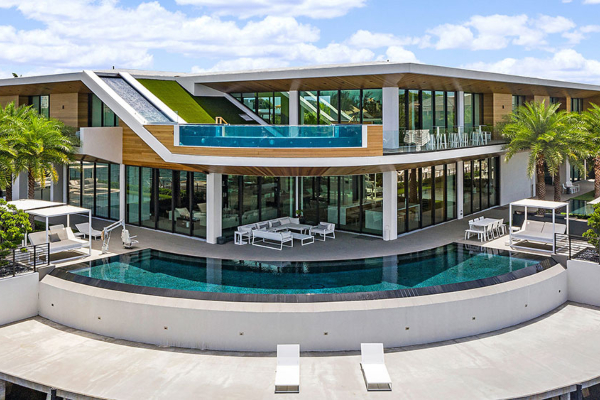 Infinity House, како што ја нарекуваат оваа вила, е изградена во 2019 година за легендата на светот на обувки, Роберт Кембел, кој за жал почина минатата година. Кембел го основа BBC International и ја претвори својата компанија во една од најмоќните, дизајнирајќи обувки за брендови како Polo Ralph Lauren, Tommy Hilfiger, Guess и Nine West. Како страствен филантроп во заедницата на Бока Ротон, Кембел стана водечка фигура во локалниот клуб Ротари, донирајќи милиони долари.