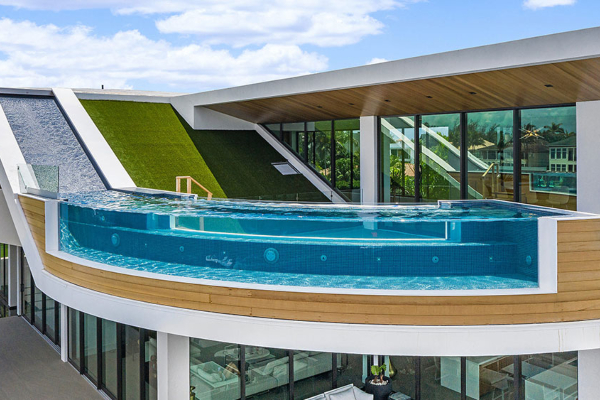 Сепак, пред да прашате, прекрасниот италијански моторен чамец Рива Домино што го гледате паркиран пред неа на фотографиите не е вклучен во бараната цена од 25 милиони долари. Со импресивни 104 метри водена површина, оваа вила може да прими јахти долги до 100 стапки или цела армада крузери, рибарски бродови и едрилици. Можете исто така да уживате во погледот на вашата флотила од еден од четирите достапни базени, со главниот, Infiniti, кој се карактеризира со заоблената форма.
