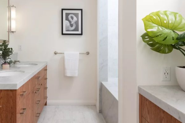 Вилата има осум бањи во кои доминира комбинација од дрво и мермер, користејќи ја убавината на растенијата за да ја внесат органската убавина на Лос Фелиз во нејзините четири sида.