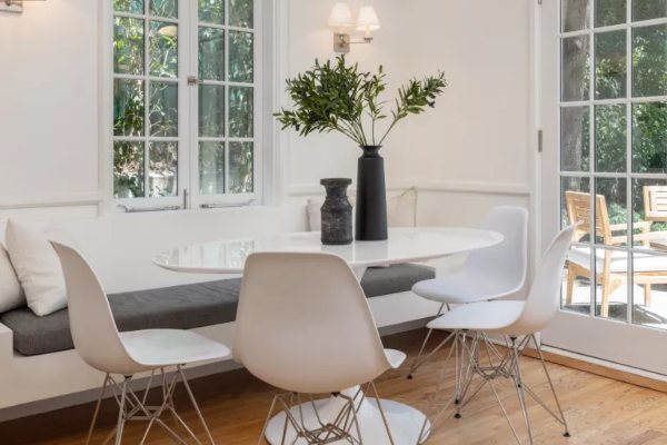 Овде, во Лос Фелиз, нејзиниот рај инспириран од Англија го слави европскиот архитектонски дизајн преку својата уникатна француска врата, украсен камин и високи тавани. Целата куќа од 460 квадратни метри прикажува коктел од традиционализмот со модерни трендови во дизајнот на ентериер, вклучувајќи минималистички простор за живеење инспириран од скандинавски стил. Палетата на бои од слонова коска првично ја избра Моби, кој е одговорен за реновирање на куќата.
