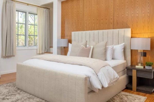 Покрај петте спални соби, главната спална соба му оддава почит на луксузот преку елегантната беж шема на бои и елегантните дрвени облоги што го прават да изгледа како луксузен хотелски апартман.