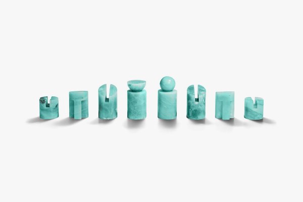 Во меѓувреме, шахот и фигурите ја поставуваат елеганцијата на совршен начин, бидејќи тие се рачно изработени од американски костен. Шаховската табла содржи колекција на исечени амазонити и холити, со акценти на познатата сина боја.