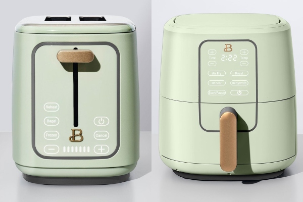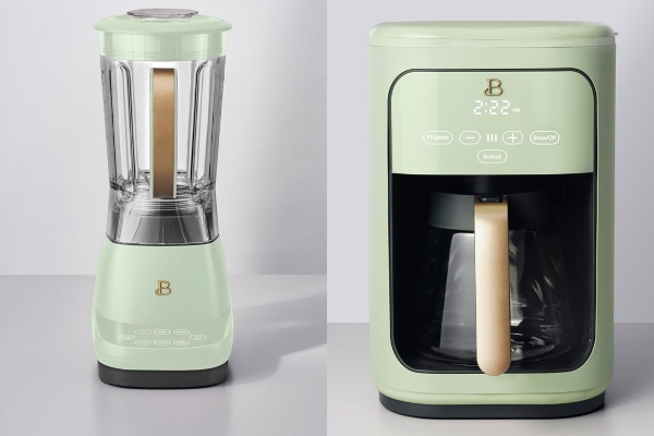 Познатата актерка, Дру Баримор, се здружи со Made by Gather’s Shae Hong за да дизајнираат заедно колекција на кујнски апарати со високи перформанси. Асортиманот е обоен во нијанса на жалфија, што дефинитивно ќе ја подигне естетиката на вашиот дом.