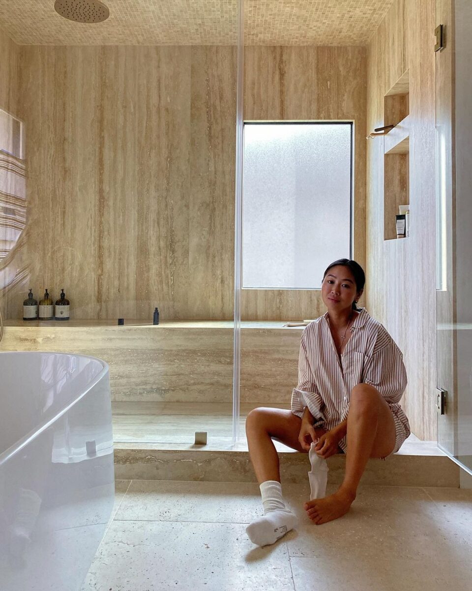 Од сè, најмногу можеби воздивнуваме зад дворот со базенот, опкружени со високи дрвја и друга вегетација, од каде Ејми Сонг следеше бројни ревии на дигитални модни ревии, во кои со задоволство би и се придружиле во таков амбиент.