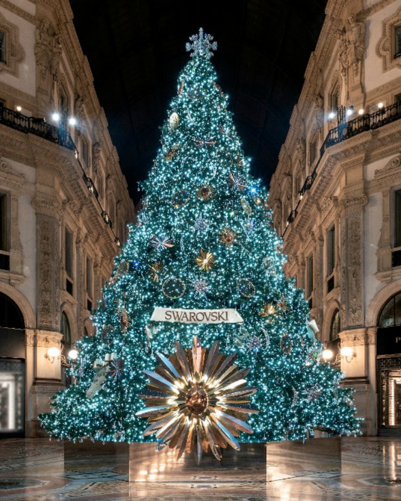 Седма година по ред, Swarovski ги слави празниците со спектакуларна новогодишна елка во внатрешноста на историската и евокативна галерија Виторио Емануеле Втори во Милано, што е уникатно место, близу до срцата на сите локални жители и симбол на занаетчиството, убавината и креативноста.