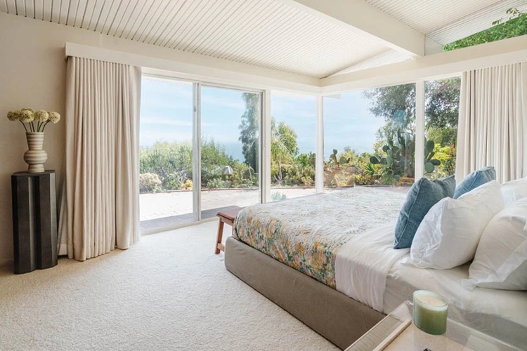 Сместена на врвот на карпа, еднокатна куќа нуди поглед на океанот од повеќето соби, а голем двор од тули со плочки гледа на брегот. Околните дрвја од еукалиптус ја обезбедуваат потребната сенка од калифорниското сонце и делуваат како бујно зеленило.