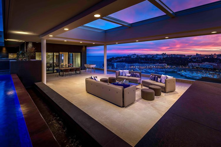 Секој гостин на овој луксузен апартман ќе ужива во лежерноста на прекрасната тераса, со живописен поглед на Медитеранот, палатата на принцот во Монако, Монте Карло и пристаништето Монако. Кога ќе бидете подготвени да прочитате една од омилените книги на принцезата Грејс, можете да отидете до бесконечниот базен, кој им го отстапува местото на соседниот надворешен простор за живеење и гранитното џакузи. Ако сакате пијалок, има и приватна винарска визба и бар на отворено.