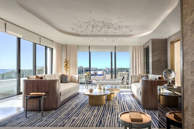 Овој прекрасен стан на Азурниот брег – кој се наоѓа на седмиот и осмиот кат од хотелот, каде што се венчаа Грејс Кели и принцот Ренија III од Монако во пролетта 1956 година – е исполнет со дела и сувенири од принцезата Грејс, како на пр. нејзините омилени песни и книги.Нејзините отпечатоци се дури и втиснати на тепихот во спалната соба во боја на песок, а нејзиниот потпис е врежан на стаклената преграда во станот. Станот е реновиран и повторно отворен во 2018 година, откако беше трансформиран од архитектите-дизајнерите Ричард Мартинет и Габриел Виора.