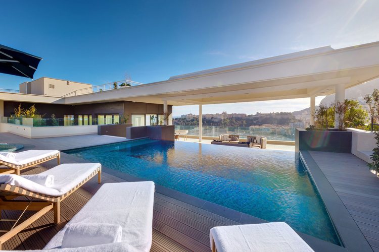 Секој гостин на овој луксузен апартман ќе ужива во лежерноста на прекрасната тераса, со живописен поглед на Медитеранот, палатата на принцот во Монако, Монте Карло и пристаништето Монако. Кога ќе бидете подготвени да прочитате една од омилените книги на принцезата Грејс, можете да отидете до бесконечниот базен, кој им го отстапува местото на соседниот надворешен простор за живеење и гранитното џакузи. Ако сакате пијалок, има и приватна винарска визба и бар на отворено.
