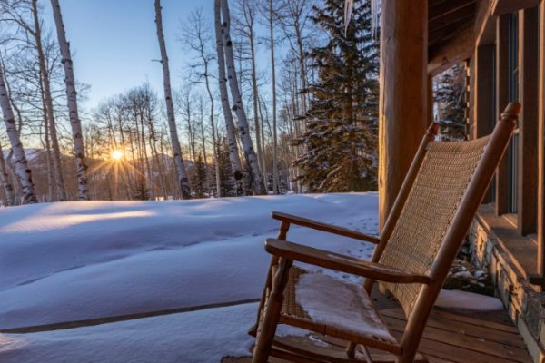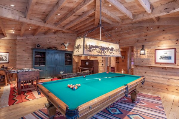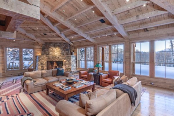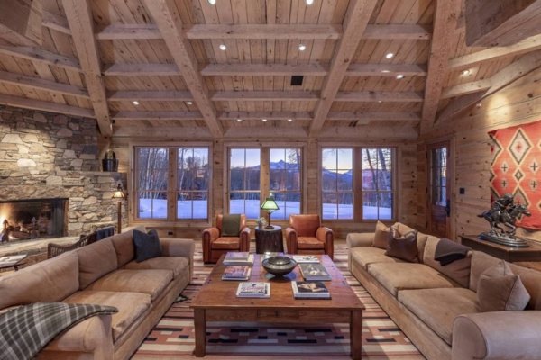 Главната куќа, направена од кедар и камен, се спојува со околниот пејзаж. Во внатрешноста, целото внимание го привлекува погледот кон планините, кој се протега низ гломазните прозорци. Дрвени греди на таванот во комбинација со камин создаваат пријатна атмосфера на алпска планинска колиба. Покрај четири спални соби, куќата има трпезарија, дневна соба, теретана, соба за релаксација и библиотека. Пансионот со три спални соби е во далечина и скриен зад дрвјата.