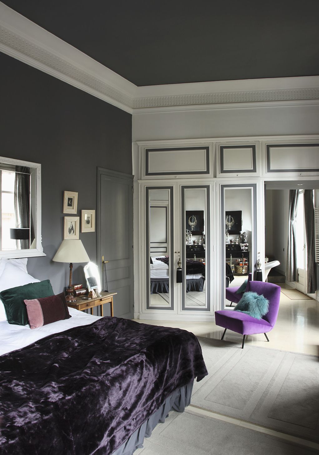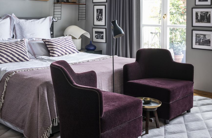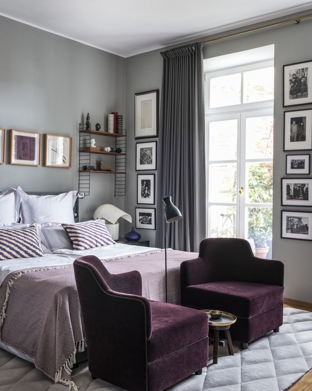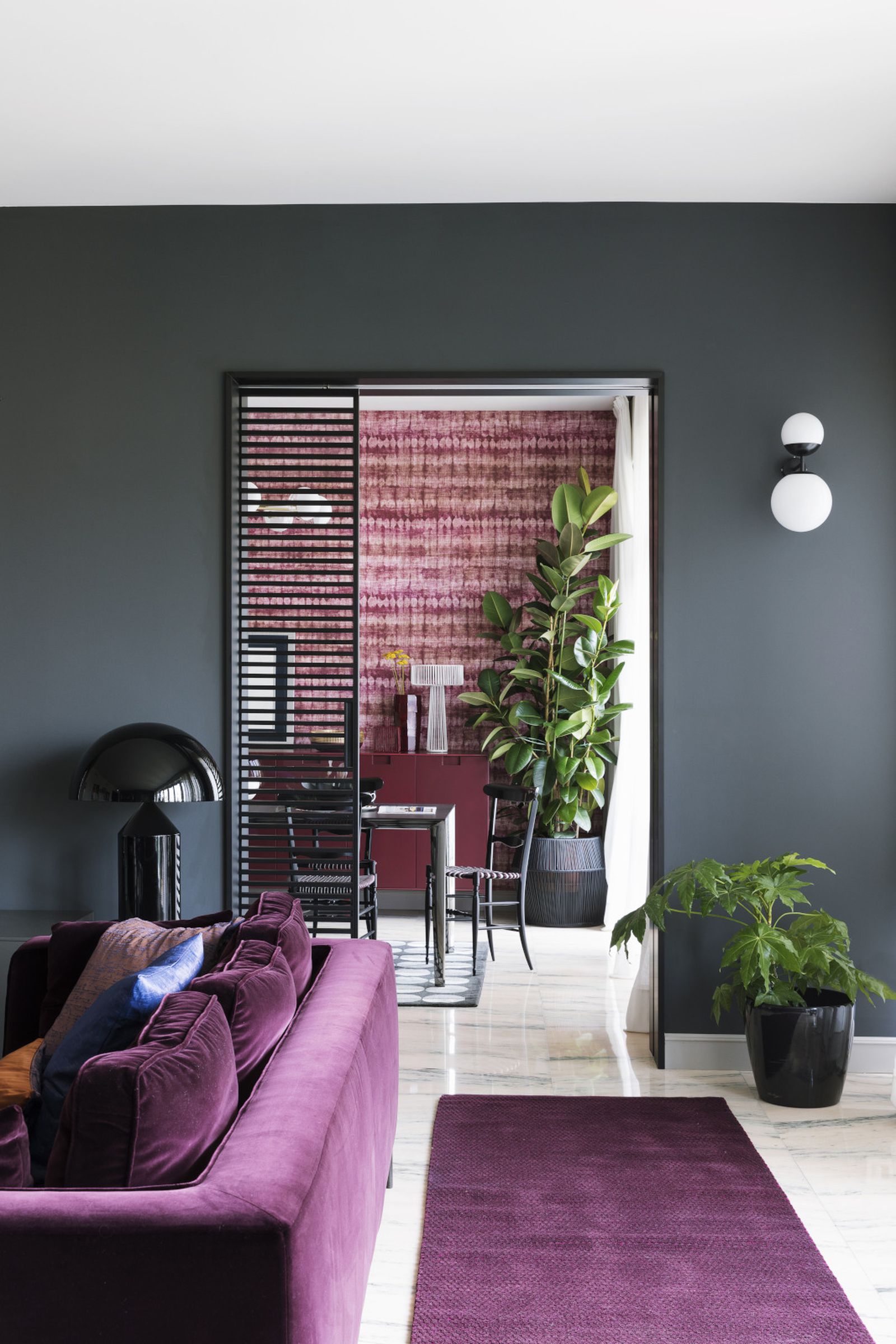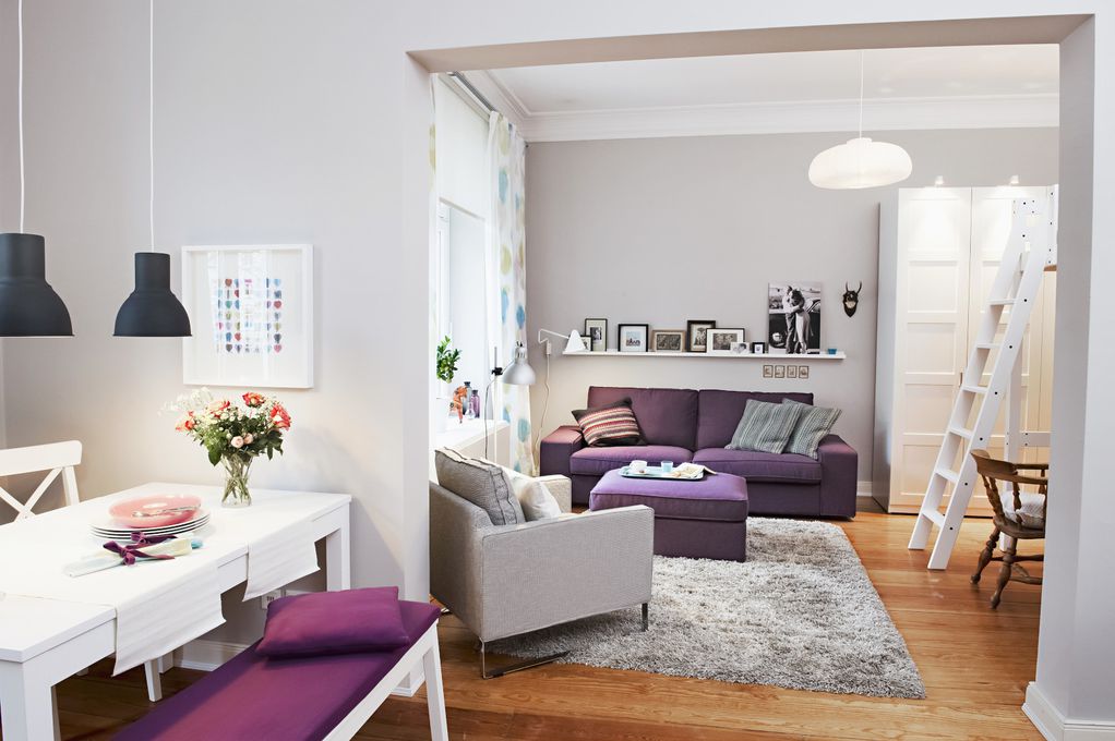 Безвременска, чиста и издржлива сива е една од боите што најчесто ја избираме за внатрешна декорација, а доколку сакате да внесете друга посилна боја во вашиот дом со сива, виолетовата може да биде совршен избор. Замислете сив ѕид и виолетова троседот – се чини како одлична комбинација.