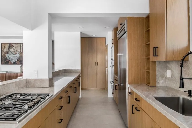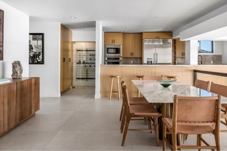 Иако поранешната резиденција на Стив Меквин е повторно замислена да одразува помодерна и иако минималистичка естетика, таа сè уште ги има сите белези на живеење во Калифорнија со стаклени ѕидови што се повлекуваат, топли дрвени облоги и отворен простор за живеење.
