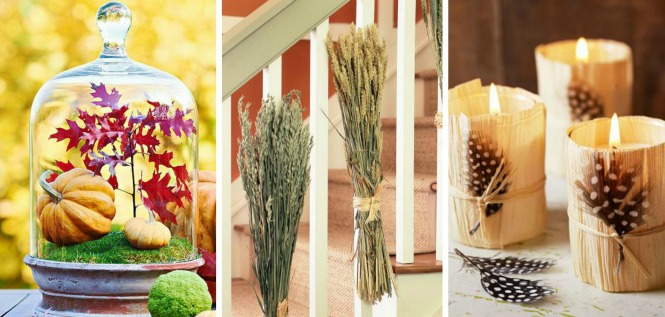 Завиткајте чаша или стаклени свеќници во суви листови од пченка или некое друго растение. Завиткајте ја рафијата околу свеќникот неколку пати, за да ги прицврстите листовите на растението. На крајот ставете пердув и ќе ги воодушевите сите гости и домаќинство со вашата декорација.