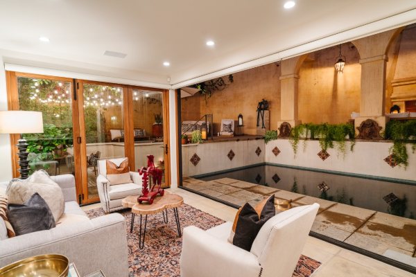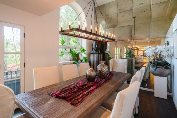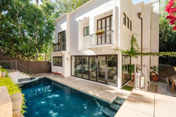 Сместена над „Sunset Strip“, куќата од 360 квадратни метри носи вкус на Медитеранот со својата оградена градина и портата од ковано железо, сводовите и светлиот камин со плочки. Куќата со четири спални соби и четири бањи е изградена во 1977 година. Реновирана е неодамна, додека сè уште го задржа својот оригинален шарм. Кујната и бањите се елегантно декорирани, додека стаклените врати го делат просторот помеѓу семејната соба и надворешната тераса и зеленилото. Покрај базенот има и скара и трпезарија на отворено, како и гаража за два автомобили и перална.