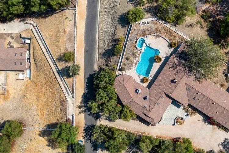 Имотот се наоѓа на површина од приближно 1,5 акри и е љубопитно поделен со улица која е отворена за јавноста, или барем за членовите на јавноста примени во Хајден Хилс, затворена заедница на богати. Со поглед на државното паркче во кое некогаш се наоѓаше ранчот Ахмансон, плацот вклучува главна резиденција со четири спални соби и четири бањи на речиси 400 квадратни метри простор за живеење на едно ниво.