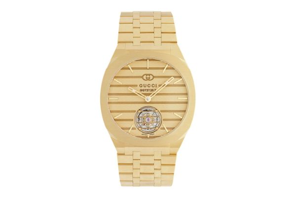 Новиот асортиман се карактеризира со четири главни линии, вклучувајќи ги GUCCI 25H, G-Timeless, Grip и накит часовници, кои го слават наследството на познатата модна куќа. Швајцарските часовници комбинираат италијанска Gucci ДНК со деликатна хорологија. GUCCI 25H доаѓа со тенка футрола, што го прави практично невидлив на зглобот. Достапен во варијанти од не’рѓосувачки челик и поплочување, овој модел доаѓа и како турбилон создаден од злато.