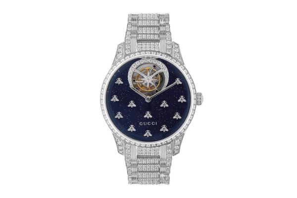 Покрај тоа, G-Timeless е украсен со разигран пчелен мотив, додека една итерација доаѓа со механизам на турбион Kering, што е украсен со скапоцен бројчаник. Сите дизајни можете да ги видите во нашата галерија или во бутикот Gucci со рафиниран накит и часовници, во Париз.