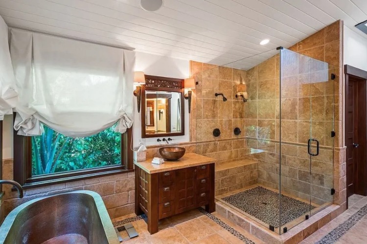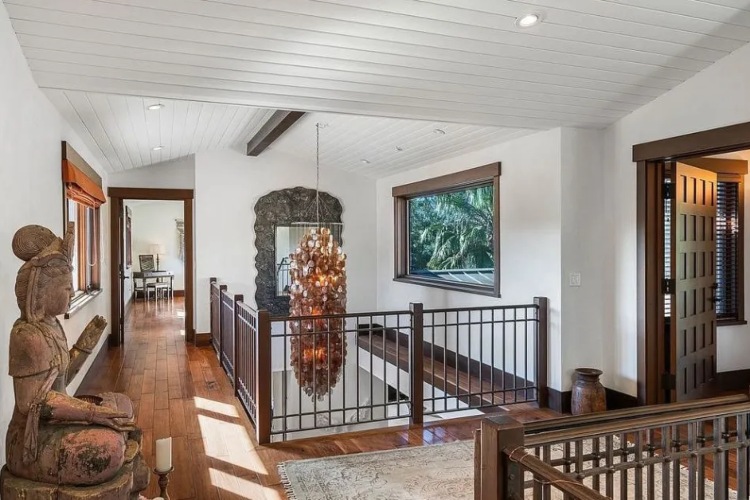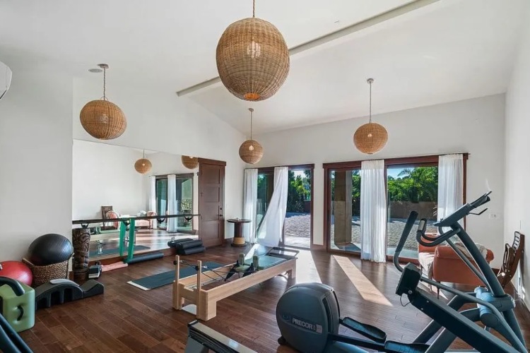 Зад големите порти и високиот густин со тропски плантажи, долга патека води покрај тревниците и базените до куќата. Куќата се простира на приближно 630 метри квадратни, има пет спални соби, шест комплетно опремени бањи, теретана, неколку камини и кујна со два острова опремена со викиншки апарати. Куќата има и студио за снимање, заедно со кабина покрај базен и спа центар.