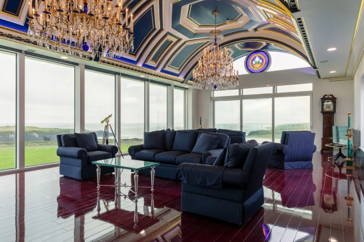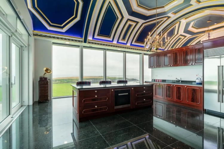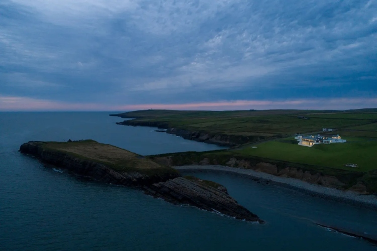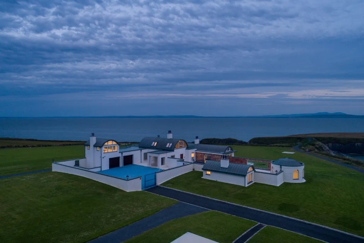 Имотот, кој се продава за 10,6 милиони долари, се наоѓа високо на груб блеф од 60 хектари во округот Клер, со драматични погледи на морето.Продавачот на ултрамодерната резиденција наводно е богат американски бизнисмен кој живее во Швајцарија. Резиденцијата е завршена пред само две години, изградена на парцела која порано била викендица.