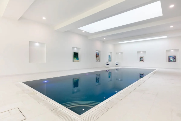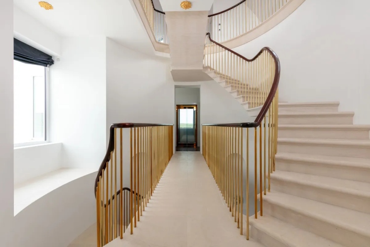 На горното ниво, работната соба води до огромна тераса на покривот и голема приемна соба со поглед на океанот.На долниот кат ќе најдете уште една голема тераса, приватен внатрешен базен и климатизирана просторија за шампањ.