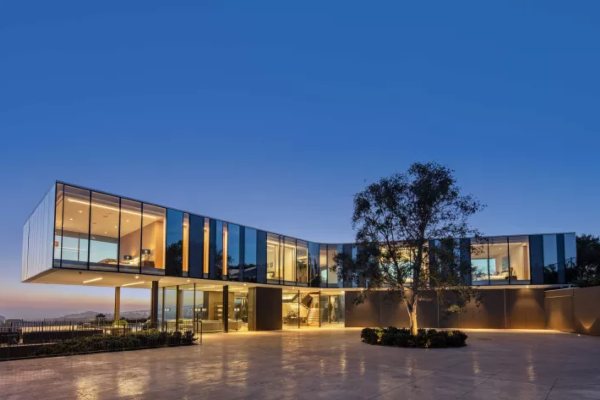 Дизајнирана да лебди над околниот град, вилата со стаклени ѕидови е поставена на 1,6 хектари земја во подножјето на планините Санта Моника и нуди непречен поглед на Лос Анџелес.