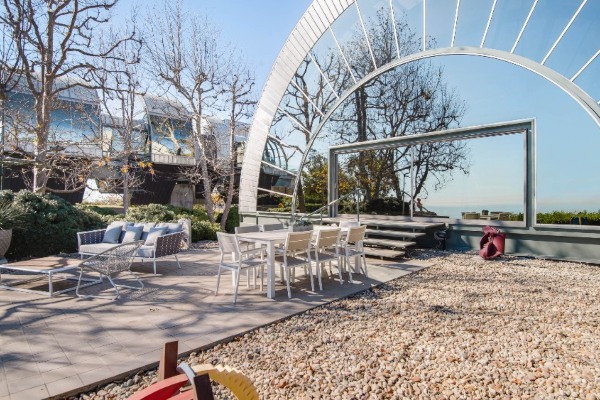 Целокупната конструкција се наоѓа на два хектари земја и е дизајнирана да издржи сеизмичката активност и да користи алтернативни типови на енергија, поради што е опремена со соларни панели. Совршено уреден двор и базен се исто така дел од оваа приказна.