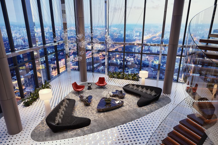 Дизајниран за личност со ексцентрична и иконска личност, директорот на Кралскиот циркус на Русија, Гија Ераџе, кој се потпре во целост на експертизата на Татјана Миронова во американски неокласичен стил за овој проект. Дизајнерот на ентериер, кој е најпознат по исклучителните ентериери, ја собра страста за забава на сопственикот со уникатното и иконско парче на Boca do Lobo, Imperfectio од Limited Edition, за да го направи станот циркуска гордост.