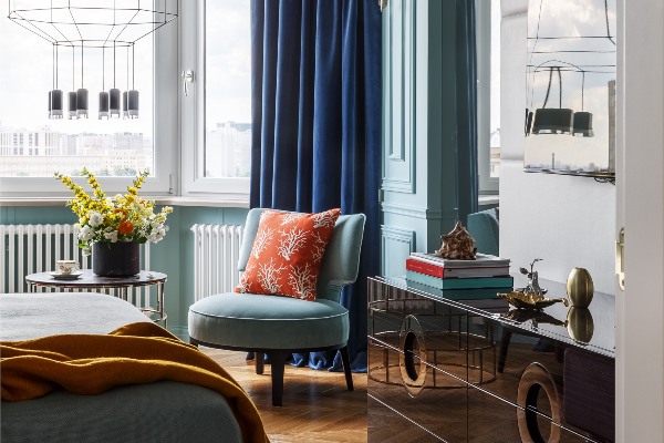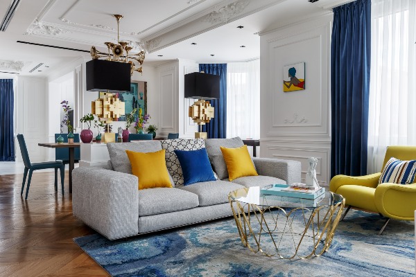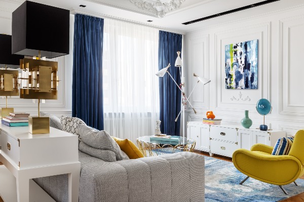 Создаден како дело на Оксан Салберг – Вашнаџе, руски дизајнер на ентериер и основач на московското студио O2 Design, овој модерен стан се состои од живописни бои и добро избалансирани контрасти.