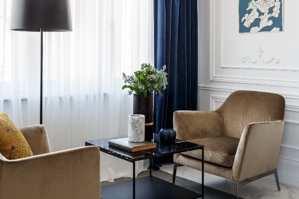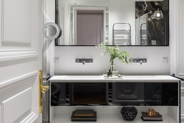 Инспириран од францускиот минималистички стил, дизајнот на ентериер има одлична палета на бои и смел избор на модели, кои ги нагласуваат модерните линии на осветлување и дизајнот на мебел во секоја соба. Изгледот на станот е многу едноставен – тоа е трособна единица со две спални соби и дневна соба во комбинација со кујна. Желбата на сопственикот беше ентериер со модерен и угледен стил. Преку жива шема на бои, овој импресивен проект за внатрешен дизајн се вклопува бидејќи боите на модерното движење совршено се вклопуваат во современиот стил.