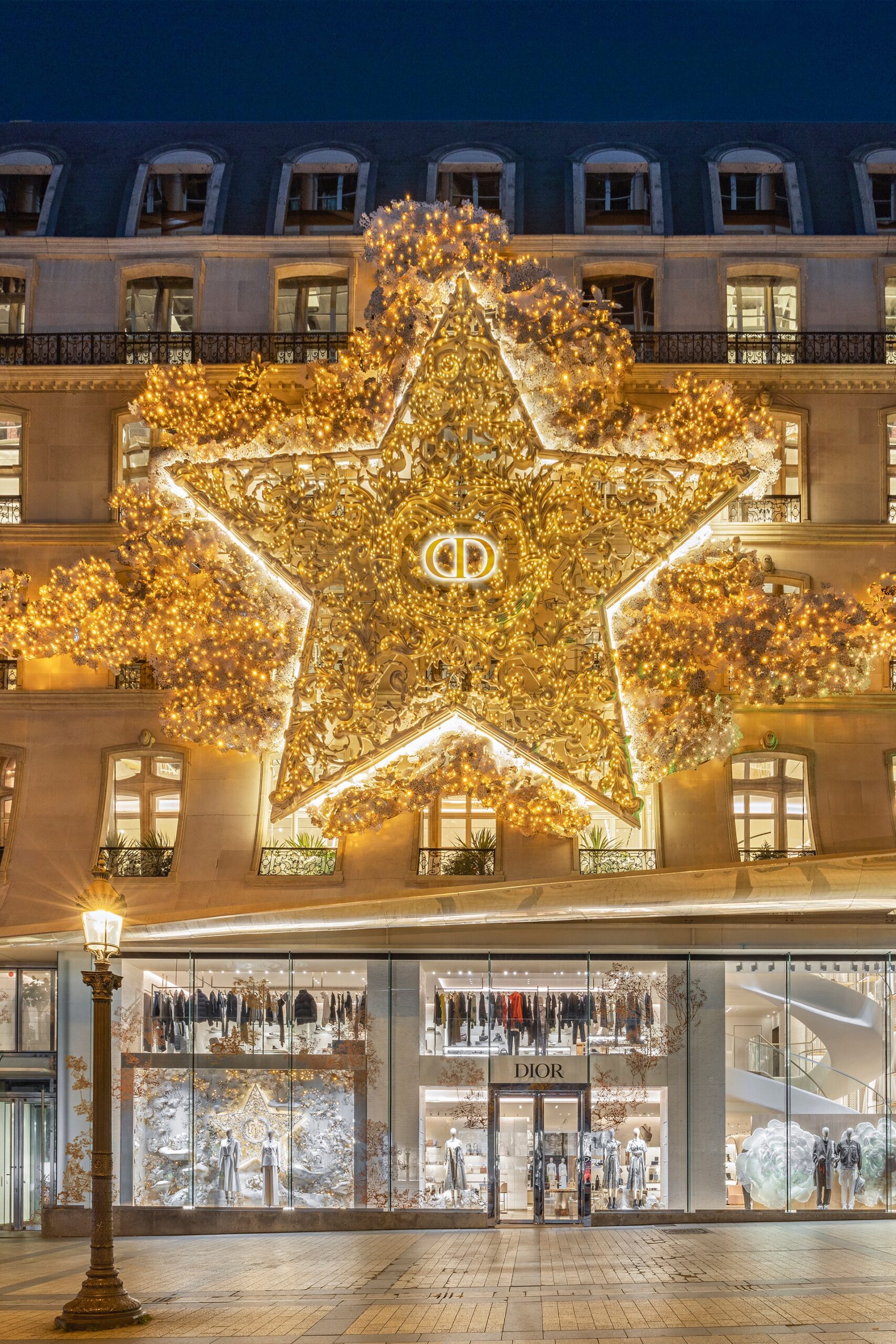 Како симбол на среќа и оптимизам, ѕвездата на Диор ги осветлува бутиците на француските куќи ширум светот, прославувајќи го овој Божиќ на најсветлиот начин. Всушност, излозите се издвојуваат на најотмените улици благодарение на парчињата од колекцијата Cruise 2022 на Марија Грација Кири, создавајќи неверојатен амбиент за одмор.