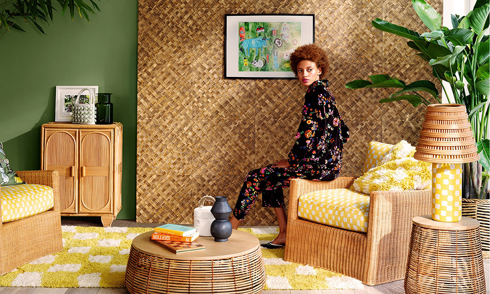 По првата заедничка колекција, која се распродаде за рекордно време, брендовите Shrimps и Habitat повторно ги здружија силите. Во втората колекција, тие инспирацијата ја најдоа во седумдесеттите години и во Palm Springs. Палетата на бои е разиграна и буди оптимизам, а посебен шарм му дава плетен ратан, што беше карактеристично во ентериерите од тоа време. Постојат и волшебни отпечатоци што се направени рачно и кои се присутни во стил препознатлив за брендот Shrimps. Во првата колекција имаше подлога чијашто шема беше позајмена од торба со спојки Doodle, чија тема продолжува низ целата колекција. Како позадина беше избрана мирна зелена нијанса за да се добие впечаток на елеганција покрај разиграноста што се забележува на прв поглед. Парчето што привлече најголемо внимание беше голема столна ламба со керамички подножје обоен во жолто-бели квадрати со голема нијанса од ратан. Дизајнот е толку откачен што можеме да го замислиме како весел додаток на секој ентериер.