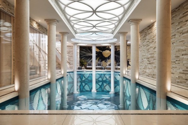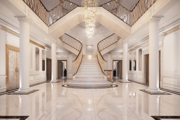 Со своите 2.700 квадратни метри, тоа во никој случај не е скромно. Неговата фасада е совршен вовед во раскошот што ве чека внатре – серија коринтски столбови со гордост ги чуваат sидовите пред прекрасните камени sидови. Ако случајно комбинацијата на британски и грчки инспирации на самиот почеток ви се чини збунувачка, верувајте ни дека сите ваши сомнежи наскоро ќе испарат како утринската магла.