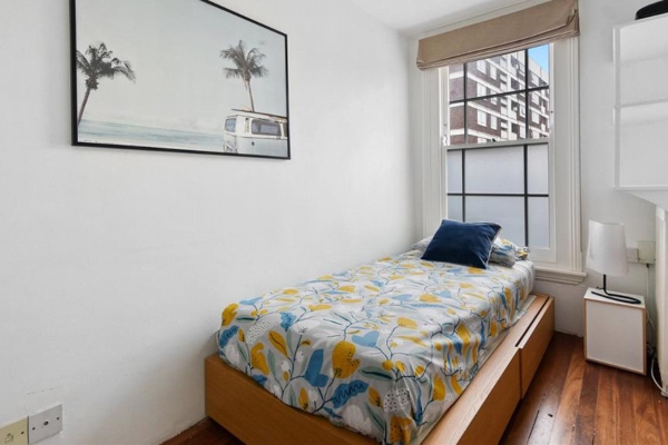 Наречена „најмалата куќа во Англија“, оваа шармантна структура во разнобојната област на Sheperd’s Bush штотуку се појави на продажба за 1,3 милиони долари. Со неверојатна кралска сина фасада, куќата, лоцирана на Goldhawk Road, е широка само 1,82 метри, што значи дека повеќето луѓе кои се осмелуваат да ја посетат и легнат на нејзиниот под, можат лесно без никаков напор да ги дофатат двата спротивни sида.