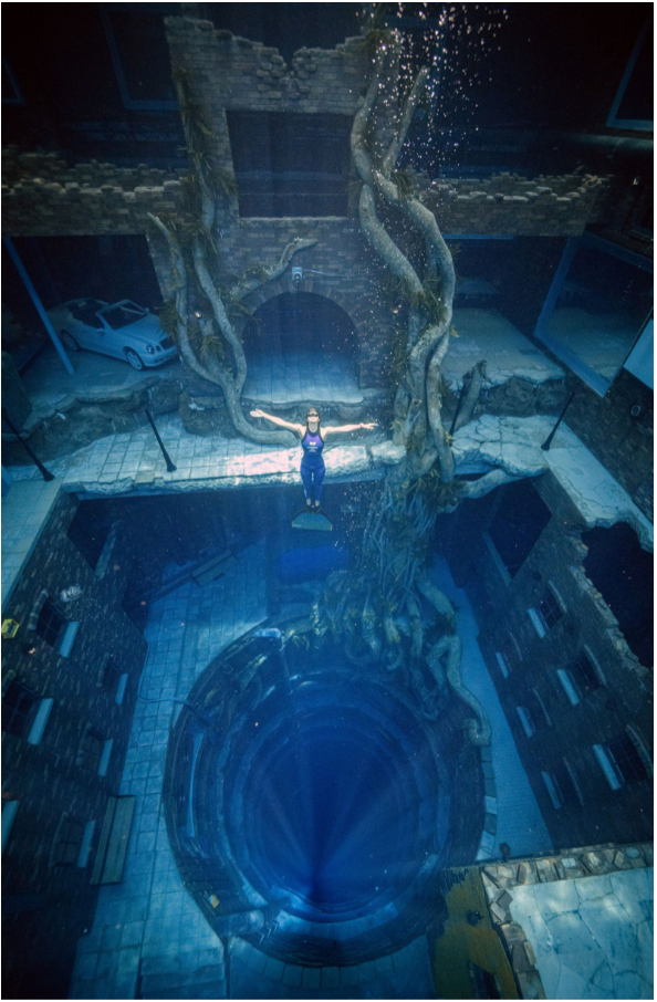 Затоа Deep Dive Dubai крие потопен град и простор за забава каде што можете да играте подводен фудбал на маса и да возите велосипед. Различни забавни објекти ве очекуваат на различни длабочини, а сопствениците тврдат дека мора да нуркате неколку пати за да ги видите сите негови привлечности.
