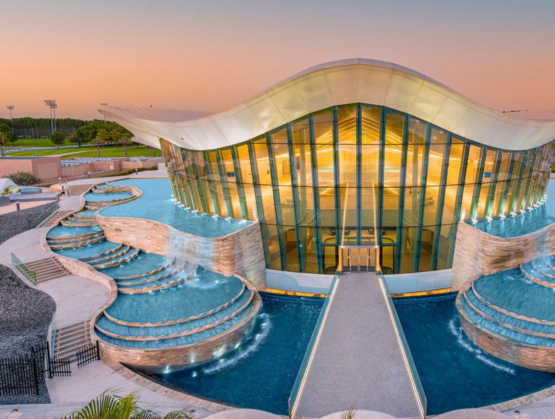 Базенот е исполнет со 14 милиони литри вода – пандан на волуменот на шест олимписки базени – што се одржува на топли 30 Целзиусови степени постојано. Сместено е во зграда во форма на остриги од 1.500 квадратни метри.