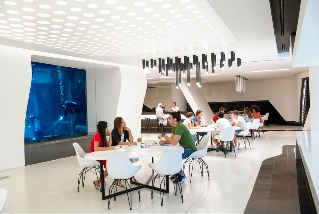 Не нуркате? Нема проблем. Постои ресторан покрај базенот каде што можете да ги гледате вашите најблиски како го истражуваат Deep Dive Dubai.