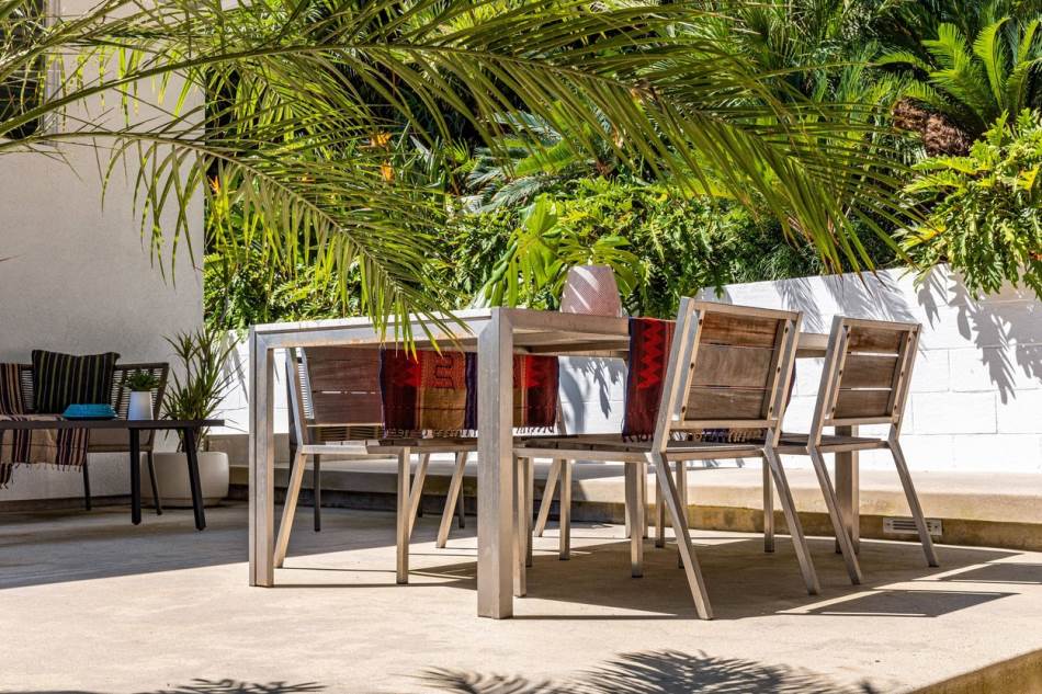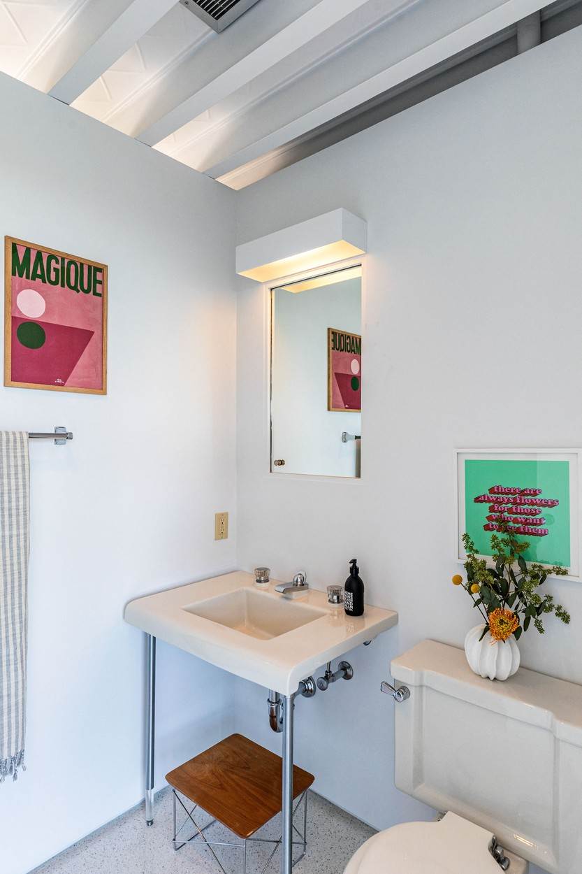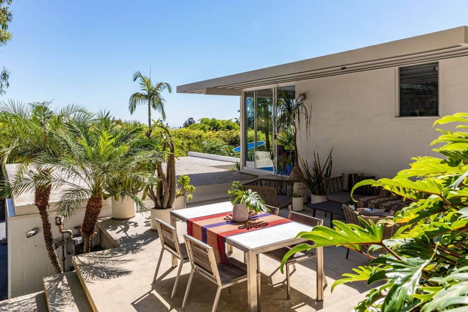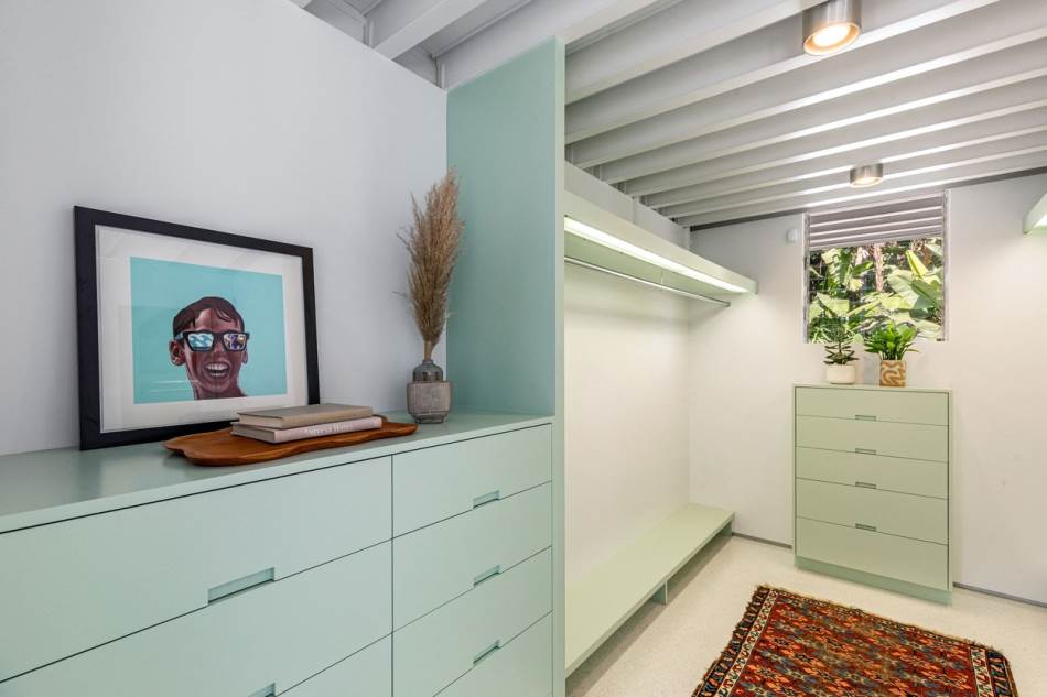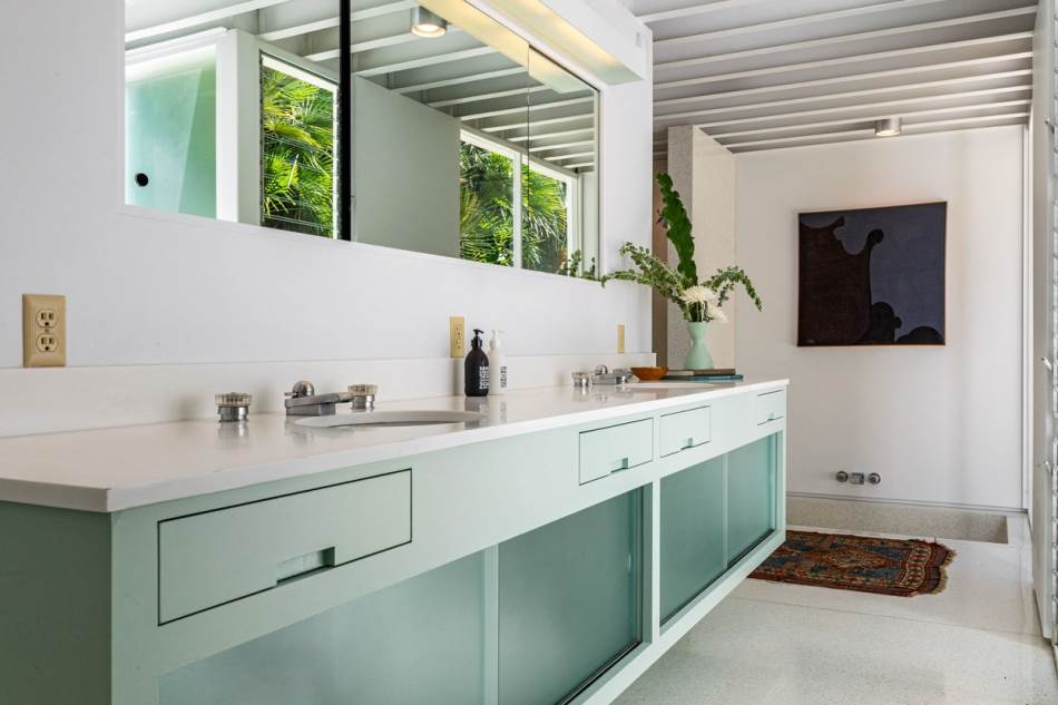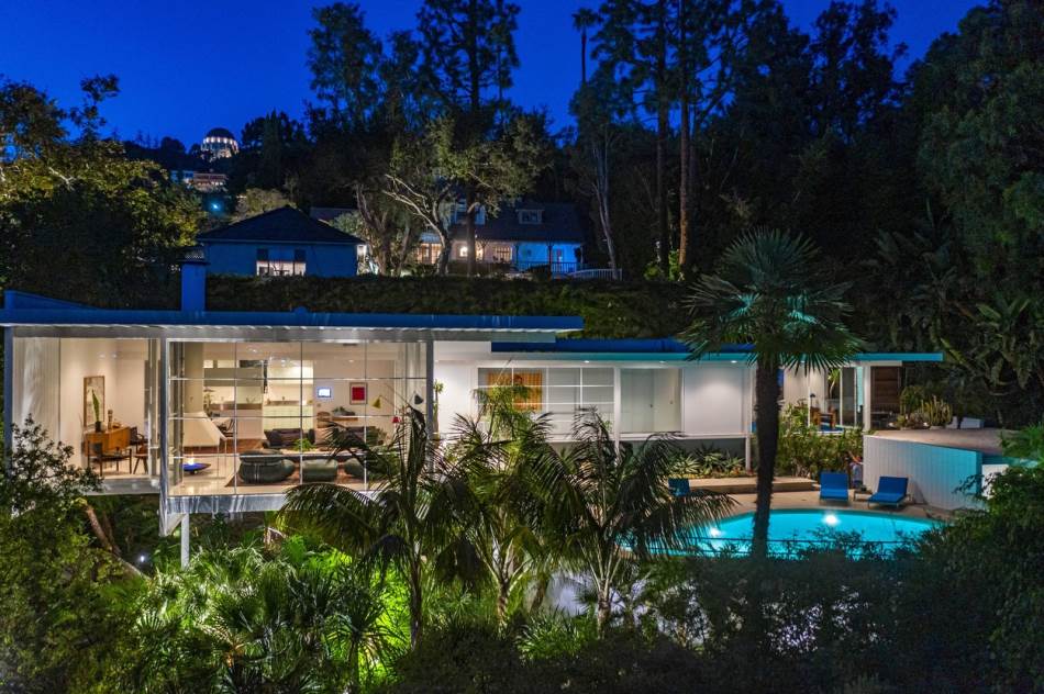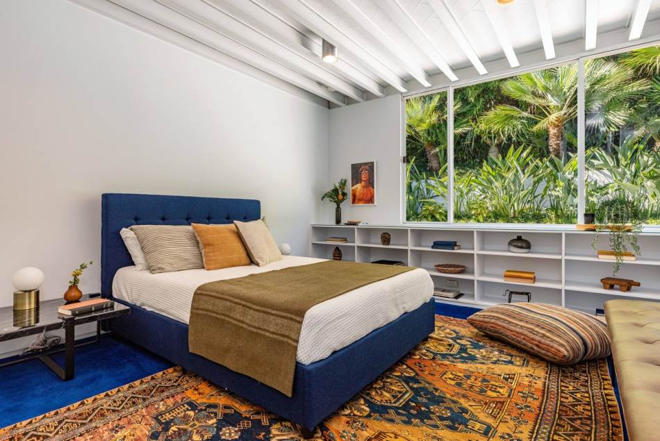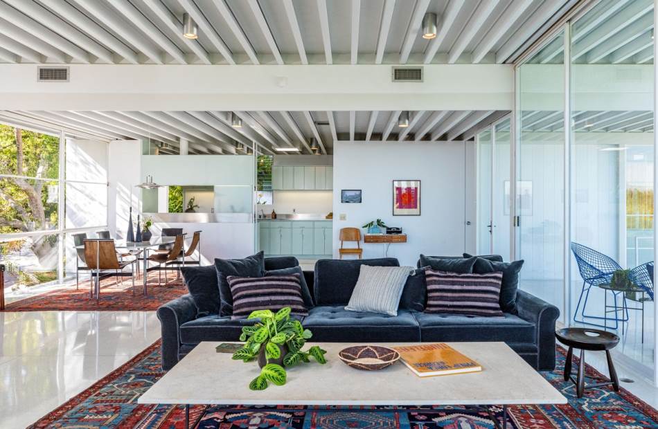 Куќата е изградена во 1960 година и е место кое оддава почит на ерата во која е изградена, како по изгледот, така и со многу ретро детали како терацо подови и тавани со греди. Големите стаклени ѕидови обезбедуваат многу природна светлина и поглед на бујното зеленило што го опкружува имотот. Куќата во облик на L се простира на 200 квадратни метри, има три спални соби и сите имаат теписи во впечатлива кобалтно сина боја, која се провлекува низ бројни детали во внатрешноста и надворешноста на вилата.