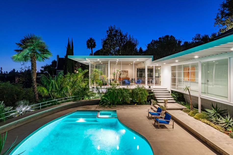Куќата е изградена во 1960 година и е место кое оддава почит на ерата во која е изградена, како по изгледот, така и со многу ретро детали како терацо подови и тавани со греди. Големите стаклени ѕидови обезбедуваат многу природна светлина и поглед на бујното зеленило што го опкружува имотот. Куќата во облик на L се простира на 200 квадратни метри, има три спални соби и сите имаат теписи во впечатлива кобалтно сина боја, која се провлекува низ бројни детали во внатрешноста и надворешноста на вилата.