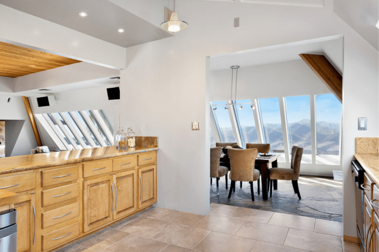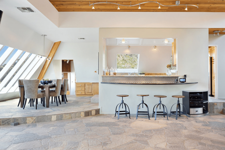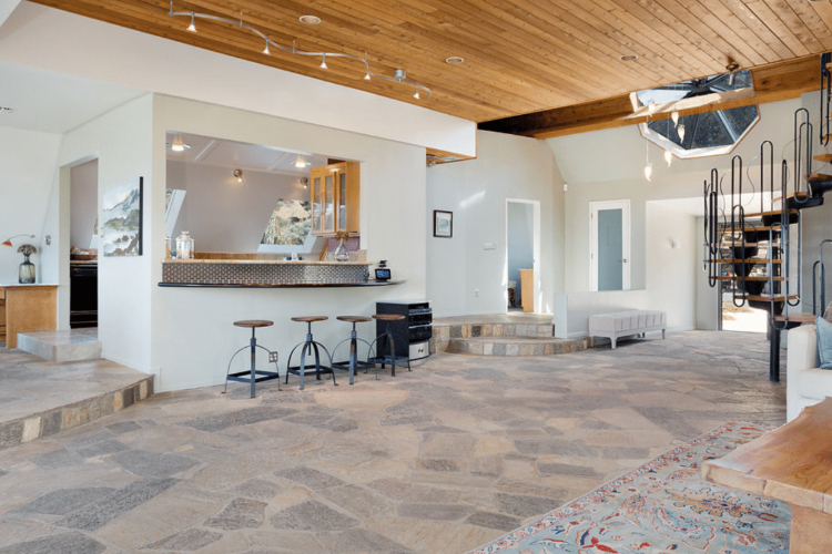 Иако надворешноста може да изгледа чудно и нефункционално, внатрешноста на куќата открива резиденција со три спални соби и три бањи со карактеристики како што е соларниот календар Analemma вграден во кварцитниот под во дневната соба.
