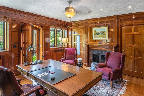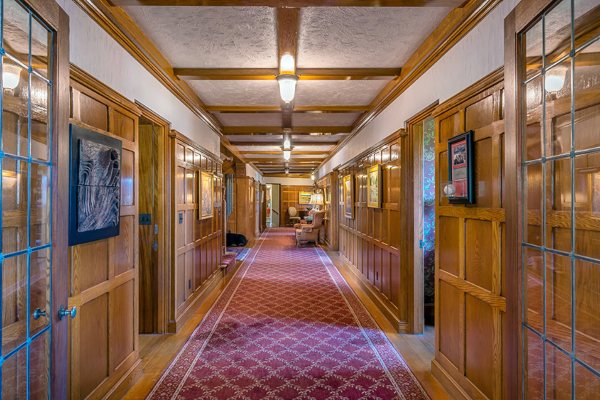 Куќата има неверојатни дрвени облоги, рачно врежана столарија, украсени камини, витражни прозорци и високи оџаци од тули. Бидејќи семејната куќа беше полна со девет деца, таа е полна и со забавни елементи, како што се тајните „хобитски“ врати што се отвораат во пештерскиот простор под скалите. Покрај тоа, има кошаркарски обрач монтиран на ѕидот на високиот таван од главната дневна соба/соба за игри.
