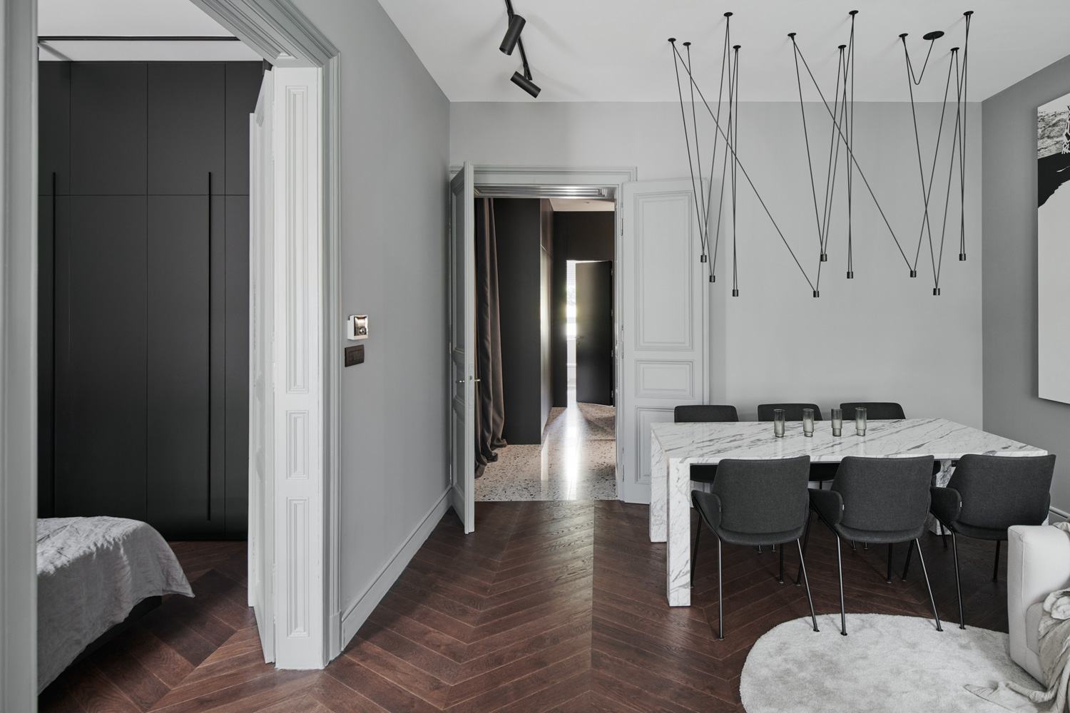 Не е тајна дека сакаме да ѕирнеме во елегантни простори за живеење, особено оние лоцирани во стари згради чијашто архитектура сама по себе има елегантен тон што архитектите често го почитуваат при креирање на нов проект. Ова е токму случајот во станот што архитектите од студиото на OCD го дизајнирале за нивниот колега. Сместен во загрепската Илица во зграда од 19 век, овој стан има сè што сакаме во врска со постарата архитектура во центарот – високи тавани, големи прозорци низ кои влегува доволно природно светло и секако идеална позиција ако не сте принудени да возите автомобил и да го сакате урбаната атмосфера што владее на Илица. Во 65м2 има една спална соба, пространа дневна соба со трпезарија, кујна и бања. Сопственикот сакал минималистички ентериер, но со максимално почитување на постојниот амбиент. Така, високите тавани и стилските врати се задржани како посветеност на оригиналната архитектура, додека комплетната внатрешност е прилагодена на потребите и естетиката на современиот човек.