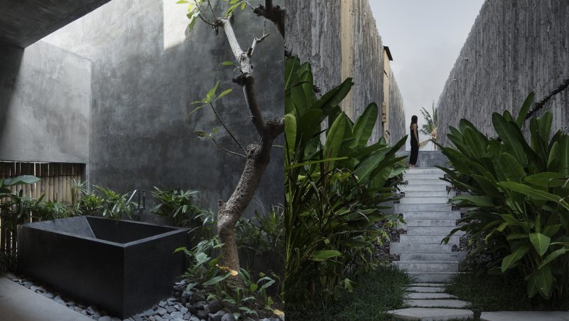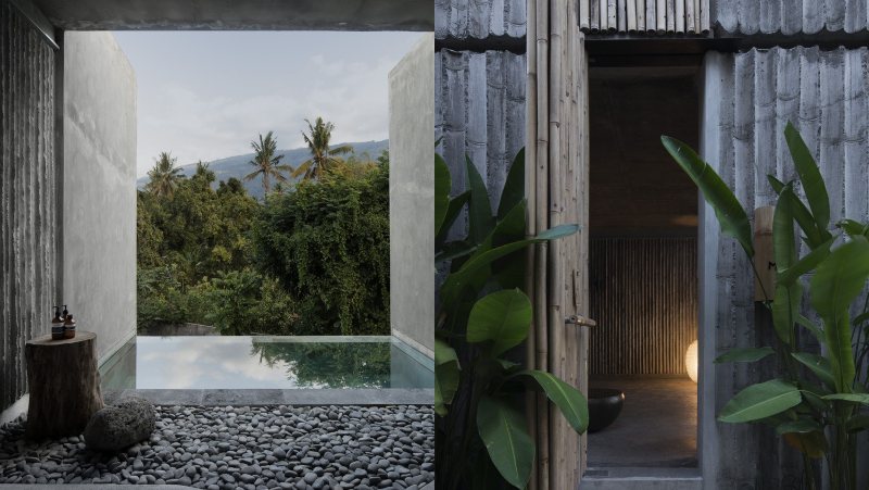 Комплексот е дизајниран од австралискиот дизајнер на ентериер Ник Брунсдон, во соработка со локалното студио MANGUNING. Како што можеме да видиме, секоја од неговите викендички има приватна тераса и базен, опкружени со високи бетонски плочи за приватност и непречен поглед на океанот од едната страна и планините и џунглата од друга страна.