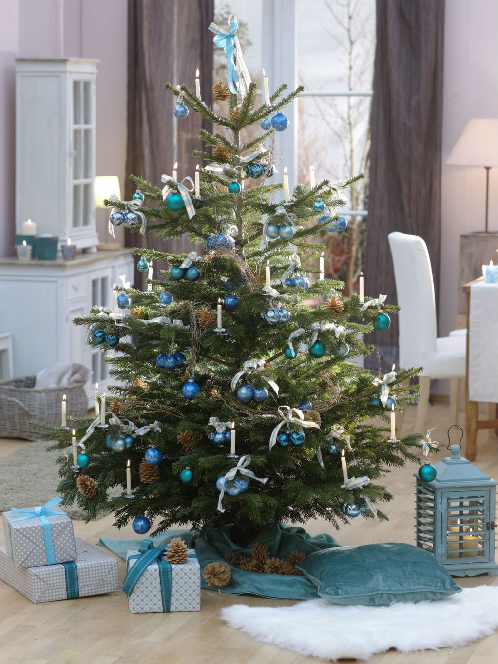 Ако сакате вашето дрво да биде елегантно, користете украси во сина и златна боја. Крајниот резултат ќе биде богато и раскошно дрво кое сепак ќе задржи одредена топлина што е неопходна за време на сезоната на празници. Во никој случај не треба да заборавите на светилките со кои сè ќе стане дополнително гламурозно.