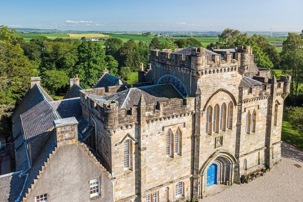 Вториот спектакуларен шкотски замок на оваа листа е замокот Крофурдленд, кој тврди дека е еден од најстарите во земјата. Сместен на 600 хектари неверојатна село на Аиршир, опкружено со шуми, овој замок изгледа како нешто од бајка. Во рок од 20 минути патување од најнаселениот град во Шкотска Глазгов, ова е совршена локација за да имате можност да уживате и во спокојството на мирното село и во сето она што градот може да го понуди. Имотот со 16 лица испушта историја, прекрасни ентериери и прекрасни терени. Може да биде ваше од 1.737 фунти за ноќ.