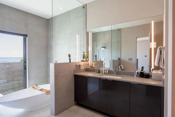 Со големина од околу 1.500 квадратни метри, главната резиденција нуди осум спални соби, седум бањи и два тоалета, и е поделена на три одделни крилја за оптимална приватност. Централната зграда е само срцето на домот и има дневна соба со двојна висина со големо скалило и лустер за изјава. Од една страна има кујна и трпезарија, додека од друга има приватно кино. На вториот кат од централниот дел има две спални соби, две бањи и домашна теретана, додека третиот кат е посветен на библиотеката со приватна тераса и неверојатен поглед на океанот.